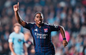 里昂前锋恩德里克庆祝上周对阵维戈塞尔塔时...